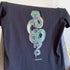 Ein Shirt für alle, die tanzen, bis die Realität kurz Pause macht. Schwarz, direkt, mit futurischem Statement. Wie ein Track, der hängen bleibt, lange nachdem die Lichter aus sind.